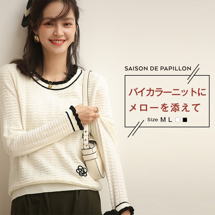 楽天市場 ニット 長袖 秋 冬 レディース ニット ニットトップス レディース ジャストサイズ 透かし編み 模様編み バイカラー メロー仕立て ワンポイント 花柄 ゆったり ラウンドネック リブ切替え Saison De Papillon Xyf9456 Saison De Papillon